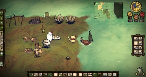 - Il existe 3 skins pour le foyer dans Don't Starve Together. Le joueur peut débloquer l'une d'elle via les cadeaux dans le jeu, la 2ème en ayant participé à la version béta du jeu et la 3ème en utilisant une clé de jeu pour le DLC Reign of Giants comme expliqué ici.