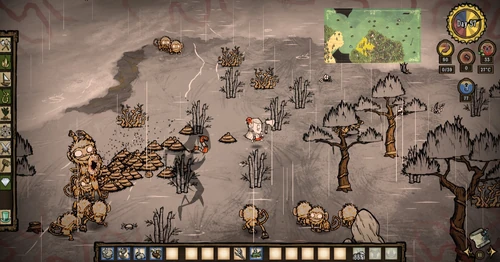 Si le joueur attaque un singe, celui-ci prend ses distances et lui jette des excréments (Manure).