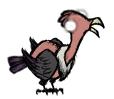 Quand il est tué, il lâche 1 à 2 morceaux de viande, 1 pilon et une plume noire (33% de chance). Il réapparaîtra à son marqueur sur la carte 1 ou 2 segments de journée après avoir été tué toutefois l'ombre de celui-ci ne reflètera pas cette situation.