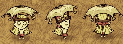 Wilson • Willow • Wendy • Wolfgang • WX-78 • Wickerbottom • Woodie • Wes • Maxwell • Wigfrid • Webber • Walani • Warly • Wilbur • Woodlegs • Wilba • Wormwood • Winona • Wagstaff • Wheeler • Wortox • Wurt • Walter