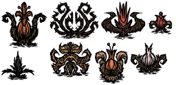 ShipwreckedではJungleまたはMeadowバイオームにて通常の花が生息しています。また、セットピースの一部としてRegular Jungle Treesの周囲に邪悪な花が咲いています。スロットマシンに金貨を投入したときの景品として邪悪の花が5つ貰える場合があるので一応は再生可能なアイテムという事になります。