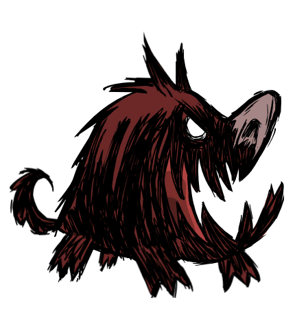 A Hound losing interest in Wilson and attacking Butterflies. An alternative poster for the The Birds and the Bees & Dogs That Want to Kill You update featuring Hounds. A Hound biting a Ham Bat and Wilson as seen in the Turn of Tides launch trailer. |