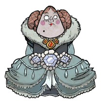 Pig Queen(ブタの女王)はQueen Malfalfa(マルファルファ女王)としても知られている、ダウンロードコンテンツ「Don't Starve: Hamlet」に登場するブタの商人のモブです。彼女はブタ達の統治者であり、宮殿で見つけることができます。 彼女に王冠や王の杖、The Blue Sow、The Jeweled Truffleを与えるとRoyal Gallery Keyを渡してくれるでしょう。