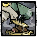 調理鍋の近くにいることで調理速度上昇 完成した料理のジャンルがノウの希望に沿っているか調べられる(インベントリ上で右クリックで調査。正解なら「Science says this will appease the sky God.(これなら天の神を鎮めることができる、科学がそう言ってるんだ)」、間違いなら「That's not what it wants.(これは欲しがっているものじゃないな)」と発言する。) |