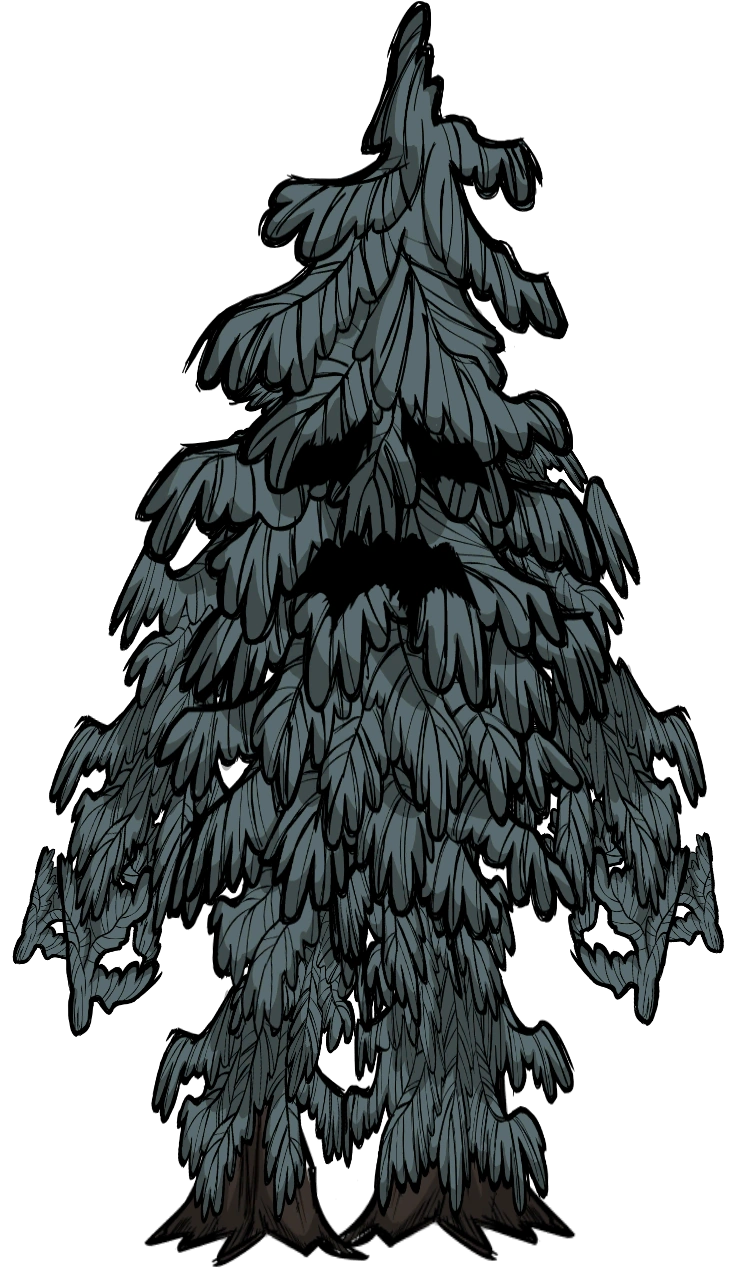 ゲーム開始から3日目までは誕生しません。通常は常緑樹を切る時1.33%の確率で現れます。30日過ぎると近くに十分な常緑樹がある場合、一度に2体まで発生する可能性があり、80日過ぎると3体発生する可能性があります。苗木(植えたばかり)から老木まで様々なサイズで発生します。 セットピースの 生きた森 (Living Forest) では一日目から出会う事も可能です。 アイススタッフ4発で凍り、倒すと モンスターの肉と生きた丸太6個を落とします。