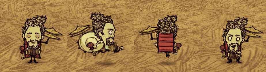 | Don't Starve | Wilson (セリフ ⋅ 衣装) • Willow (セリフ ⋅ 衣装) • Wolfgang (セリフ ⋅ 衣装) • Wendy (セリフ ⋅ 衣装) • WX-78 (セリフ ⋅ 衣装) • Wickerbottom (セリフ ⋅ 衣装) • Woodie (セリフ ⋅ 衣装) • Wes (セリフ ⋅ 衣装) • Maxwell (セリフ ⋅ 衣装) • Wagstaff (セリフ ⋅ 衣装) |