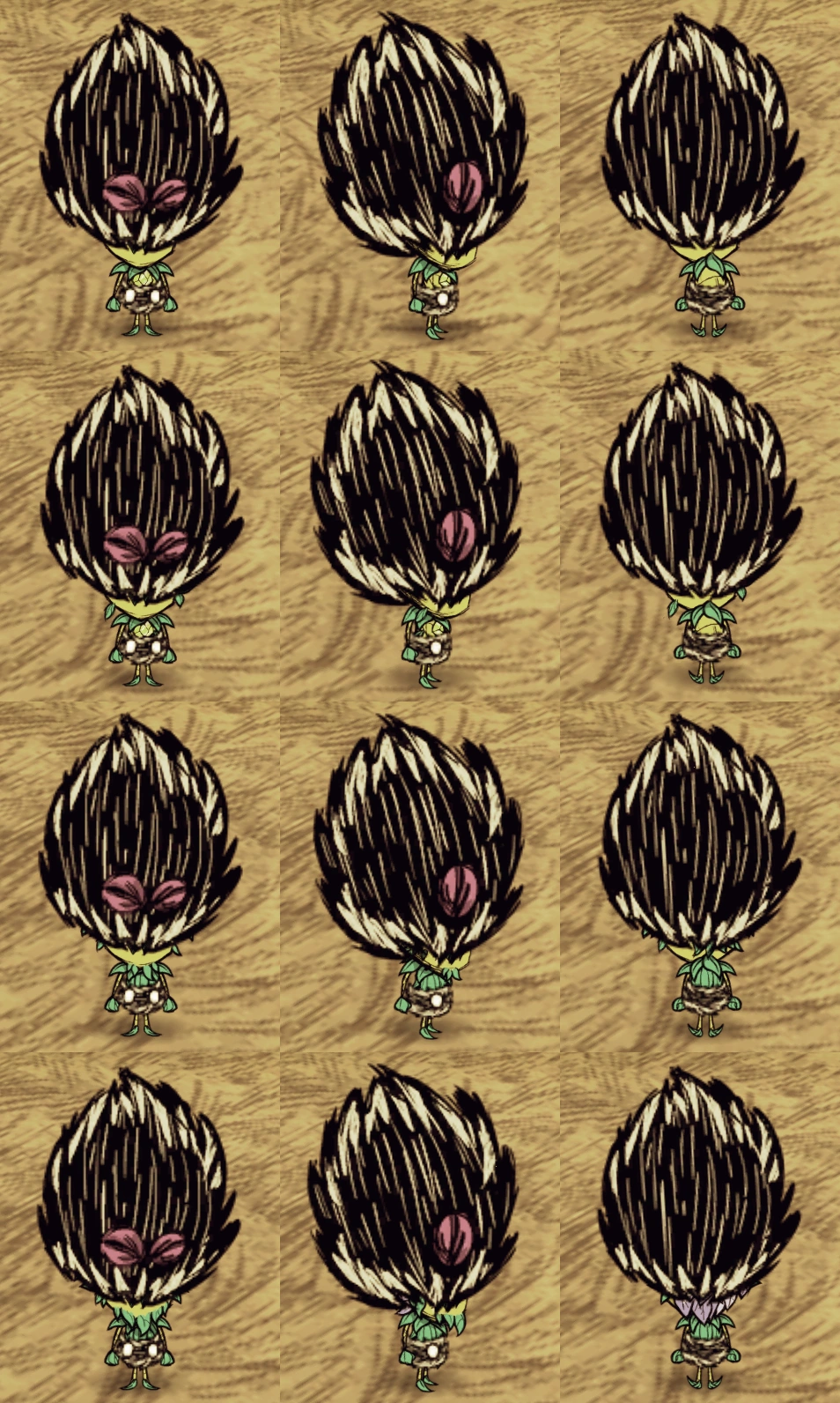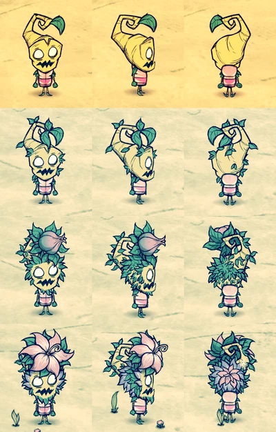 | Don't Starve | Wilson (セリフ ⋅ 衣装) • Willow (セリフ ⋅ 衣装) • Wolfgang (セリフ ⋅ 衣装) • Wendy (セリフ ⋅ 衣装) • WX-78 (セリフ ⋅ 衣装) • Wickerbottom (セリフ ⋅ 衣装) • Woodie (セリフ ⋅ 衣装) • Wes (セリフ ⋅ 衣装) • Maxwell (セリフ ⋅ 衣装) • Wagstaff (セリフ ⋅ 衣装) |