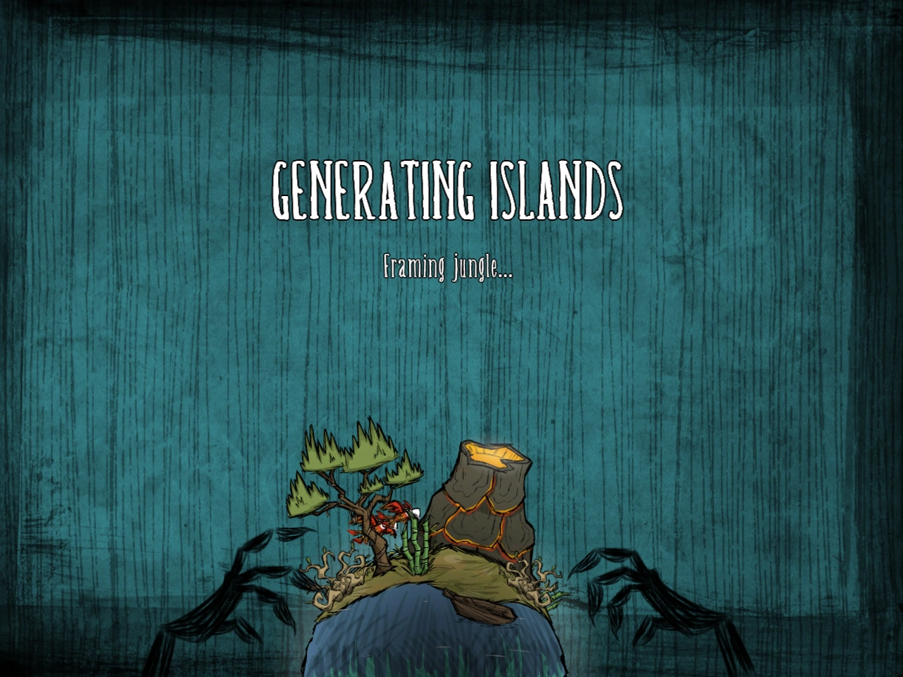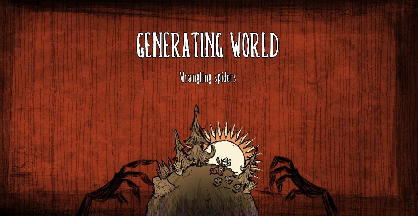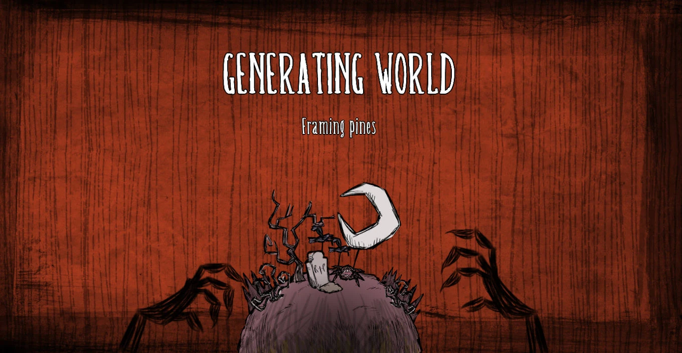 Экран при генерации мира — это переходная/загружающая часть между выбором персонажа и игрой. В ней мы видим чёрные руки, дрожащие над маленьким земным шаром, на котором изображены игровые объекты. Загрузка мира сопровождается короткими шутливыми фразами, такими как "Разгоняем монстров" или "Генерируем бороду Уилсона".